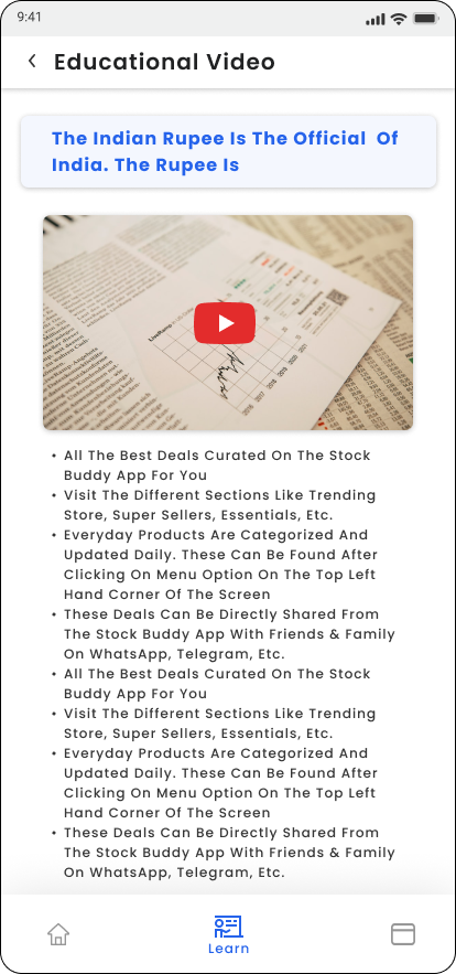 We built an application that simulates the real stock market experience, but with a twist: students use “fake coins” instead of real money. This allows them to explore different investment strategies, buy and sell stocks (Indian and international!), and even set stop-loss limits – all without risking a single penny.